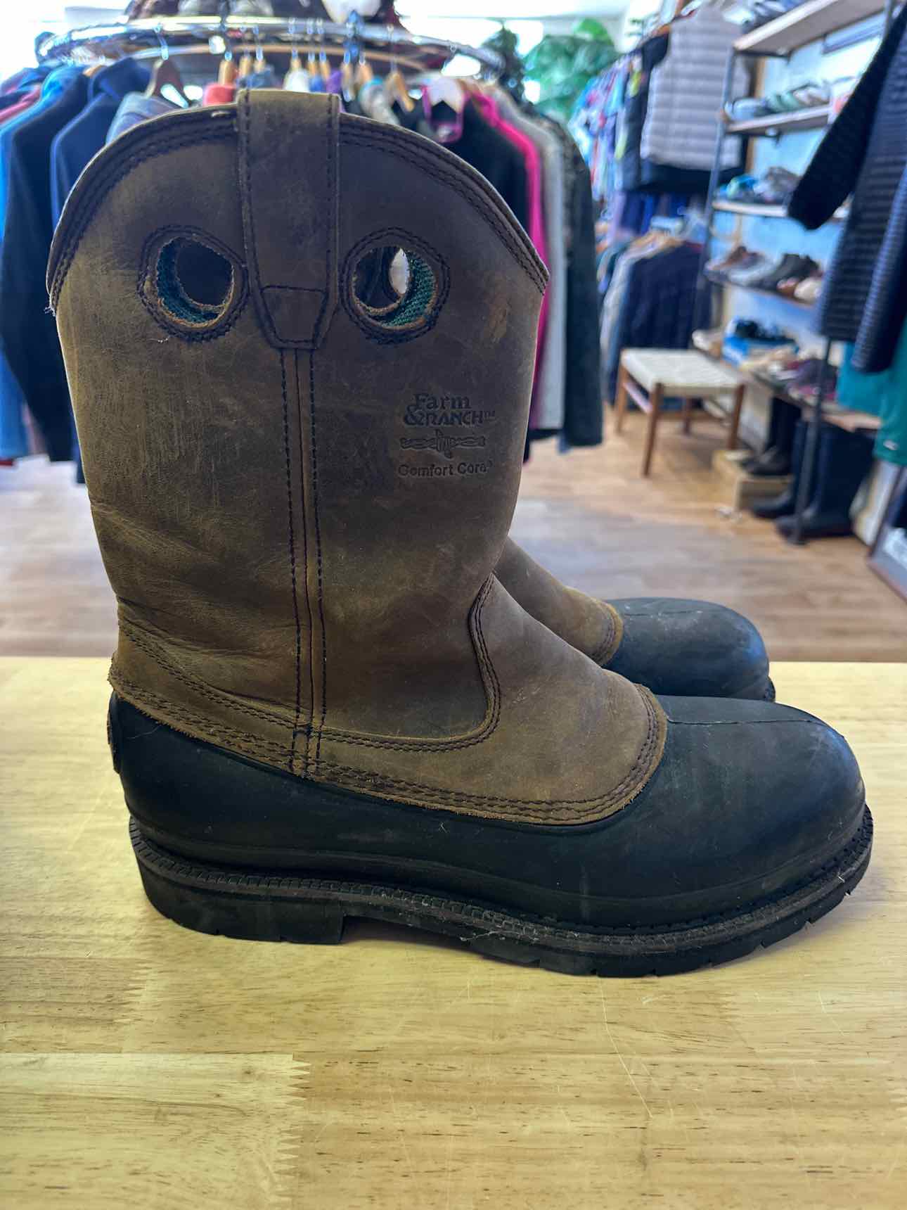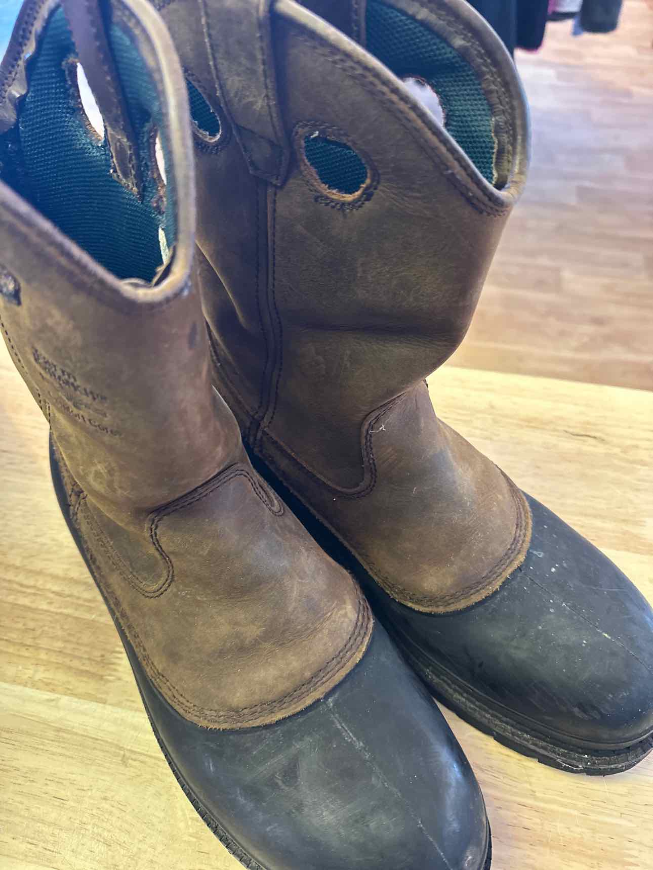 Muddog Wellington work boots. black and brown with green interior. size 13