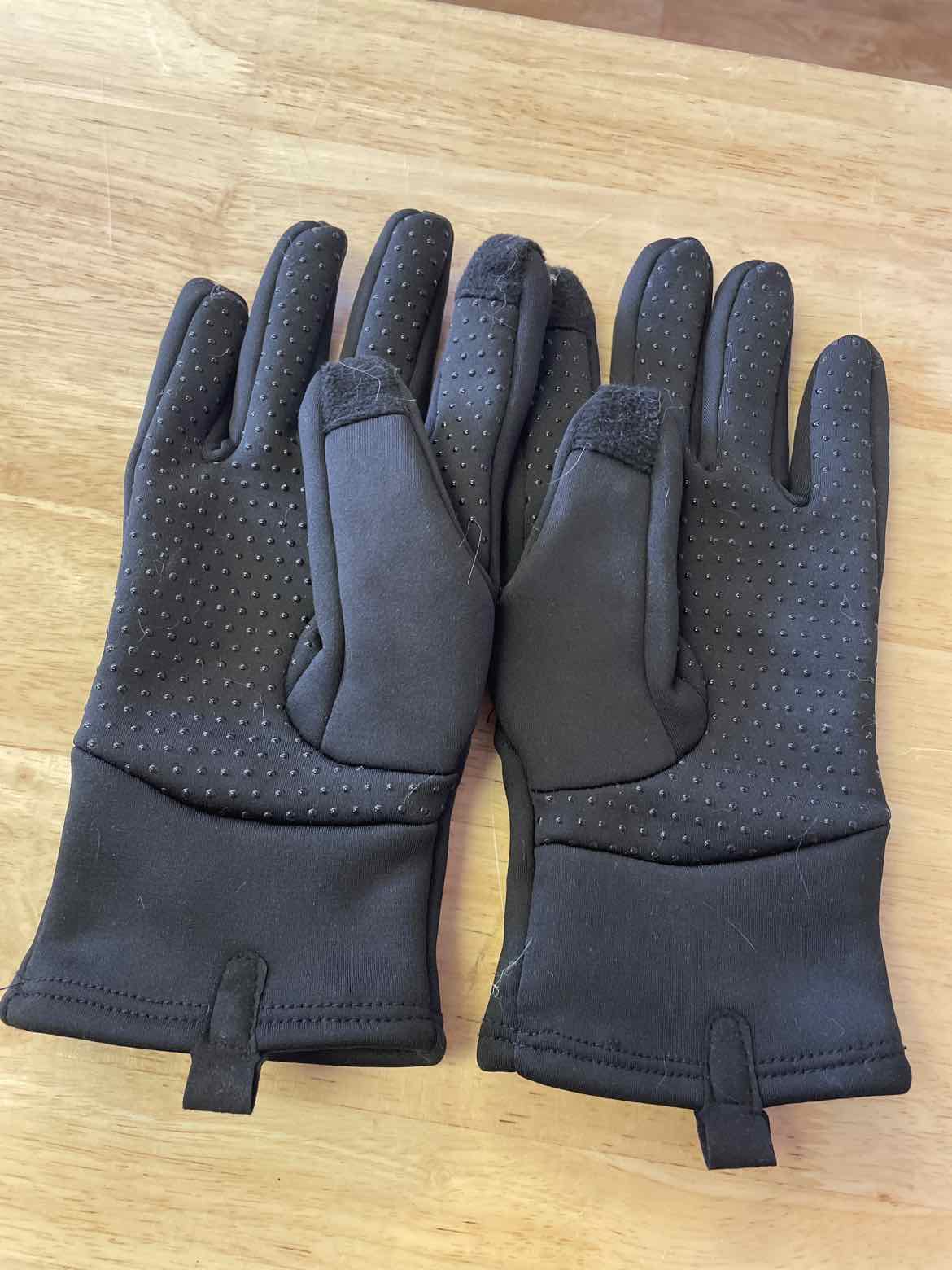 black gloves with grip dots on hands