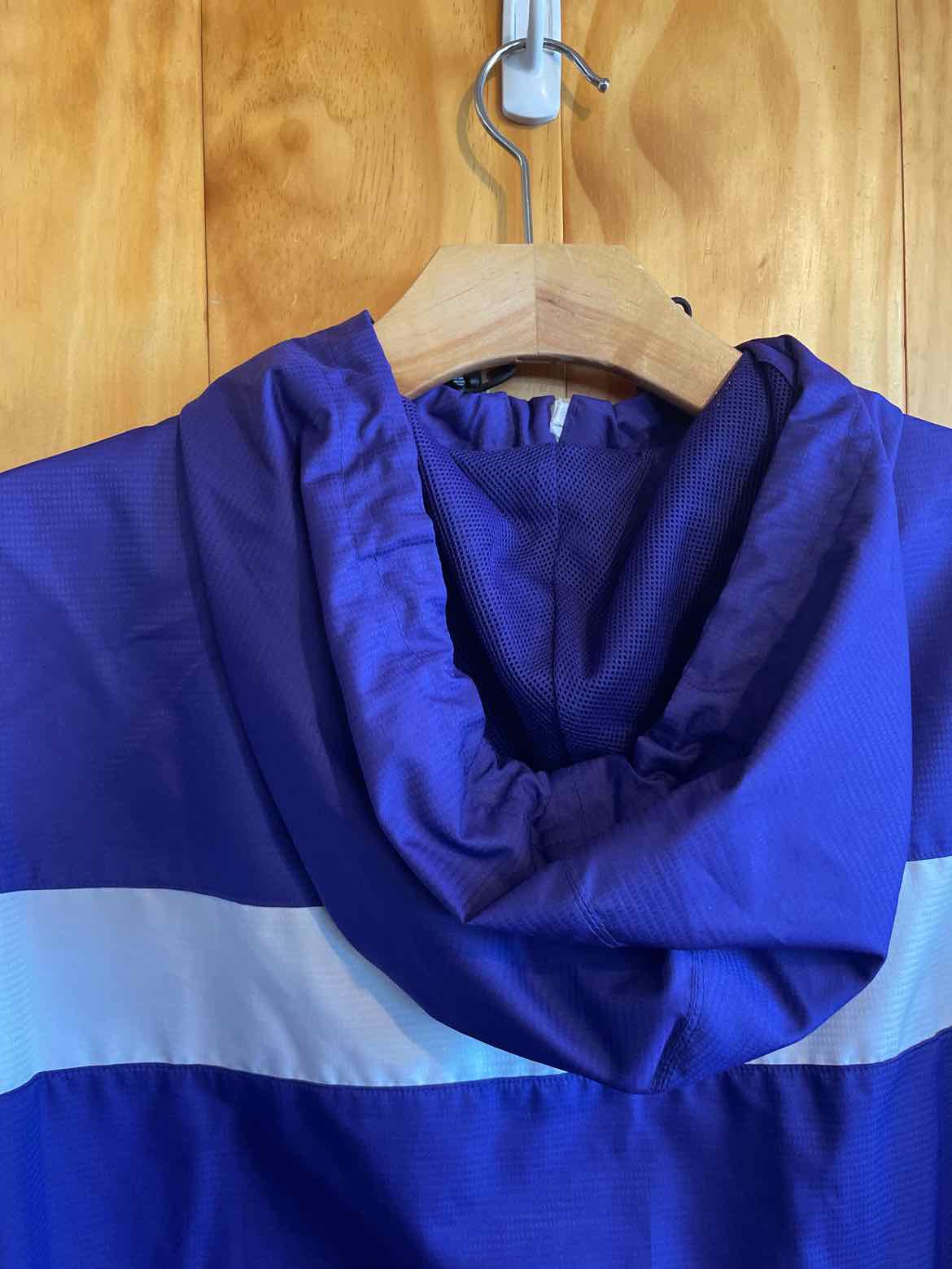 Climaproof full-zip hooded jacket with white accents. cinchable hood
