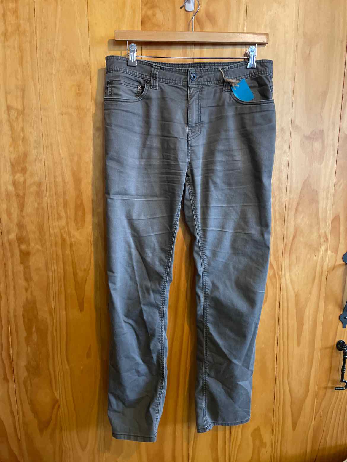Slim fit pants. black brand patch on back waistband. has a hole in the back pocket, sold as is