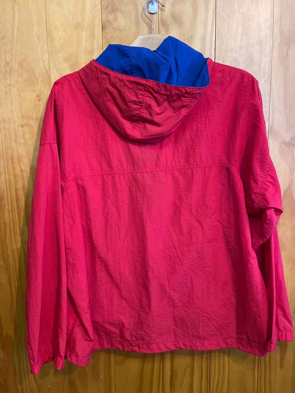 Red Pull Over wind breaker w/blue accents size L