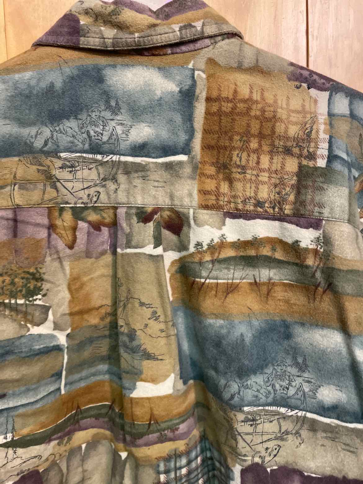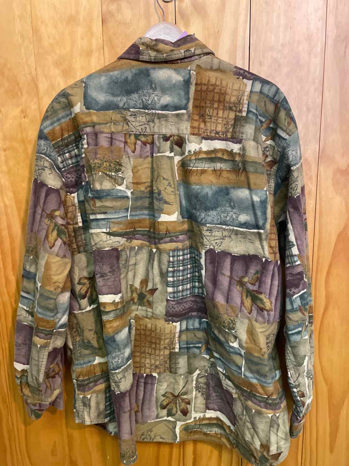 Warm colored full button collared shirt with all over patterning- p2p 22.5 inch