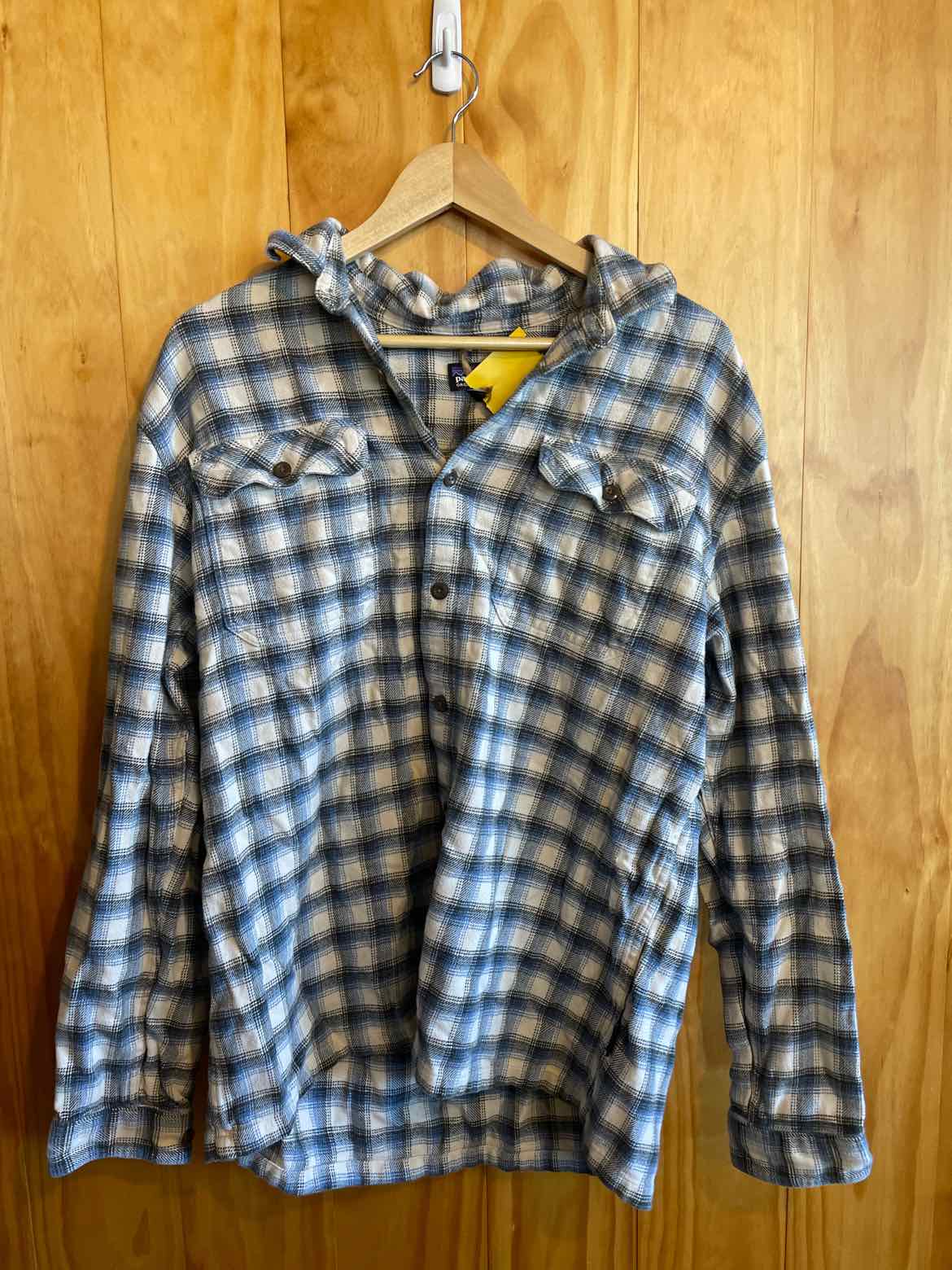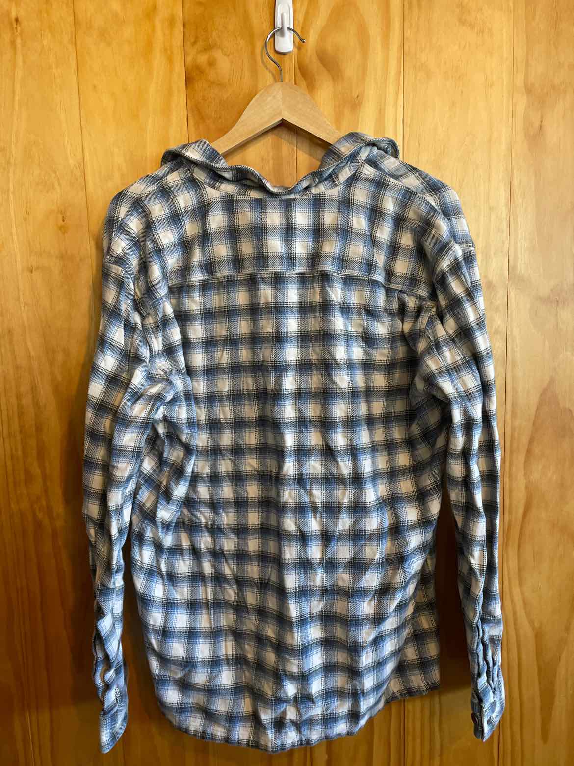 Blue, white & black plaid fjord flannel, size L