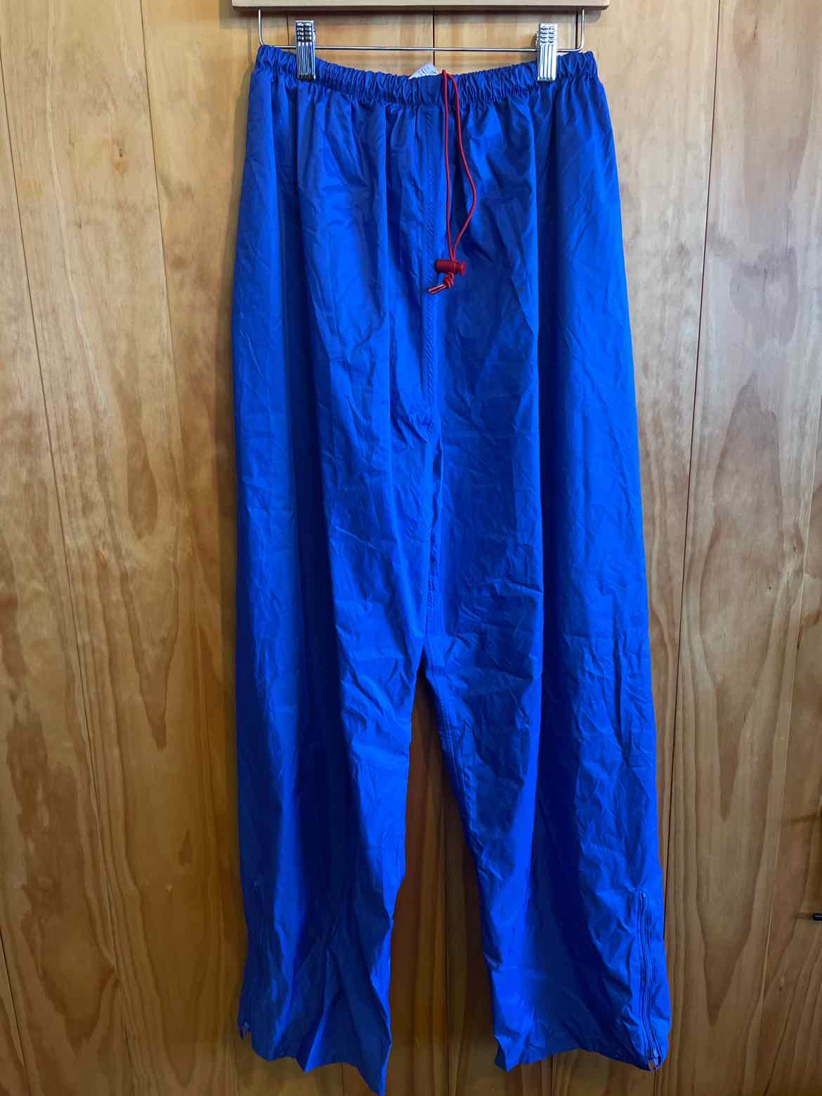 rain pants with red inner and cinch waist
