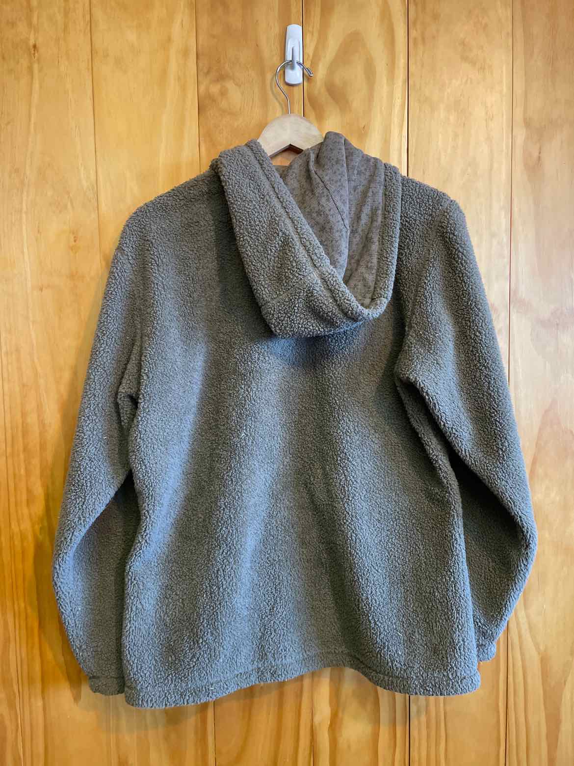 Full zip hooded sherpa fleece with drawstring hood. Size L
