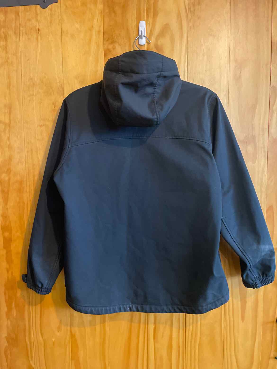 Hooded fleece lined jacket with 2 zip pockets. slight wear signs on front