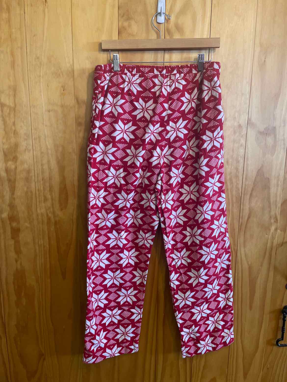 Hanna Anderson womens pajama pants with red and white snowflake design