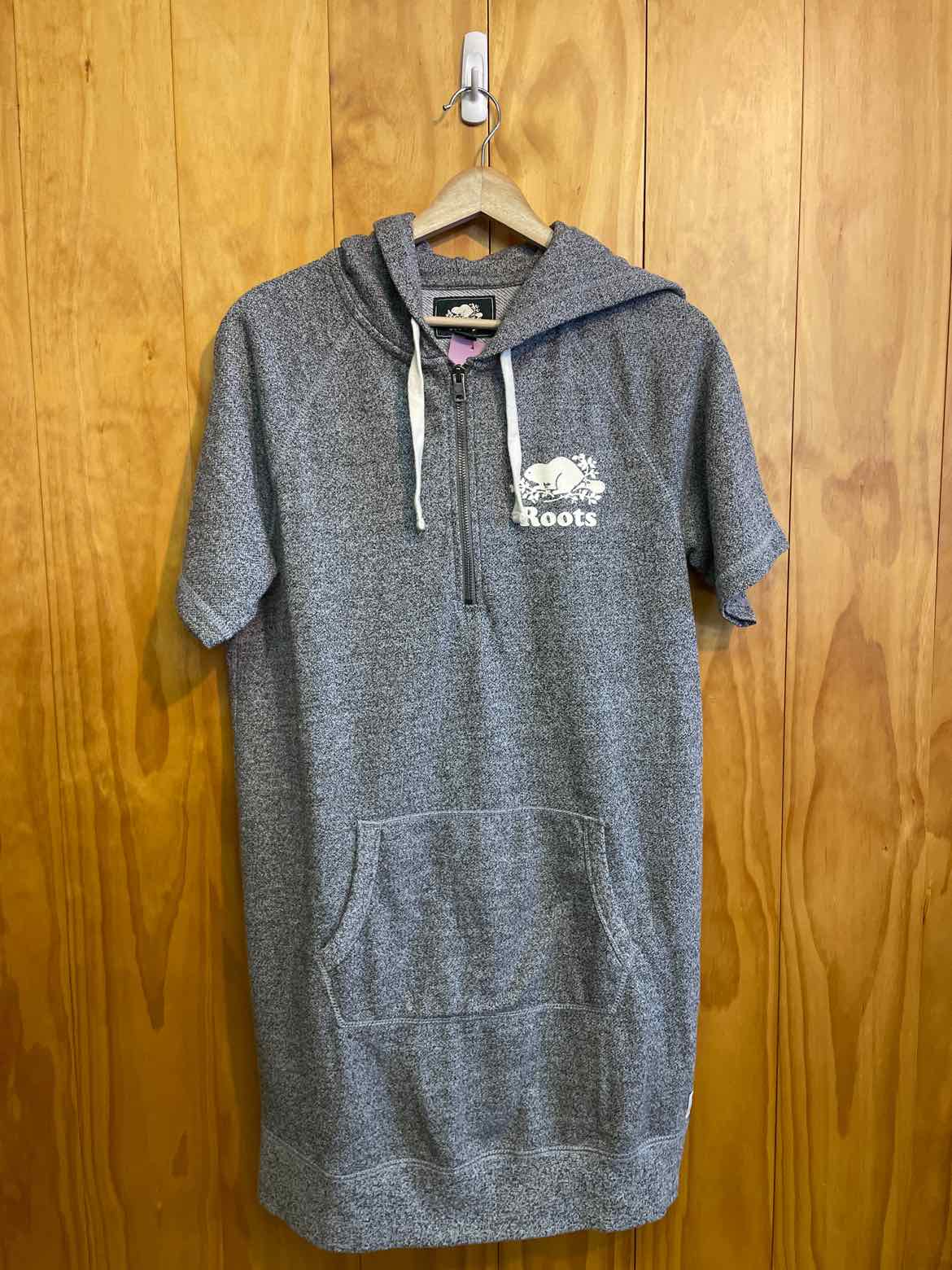 roots short sleeve quarter zip hoodie dress with roots logo design size M