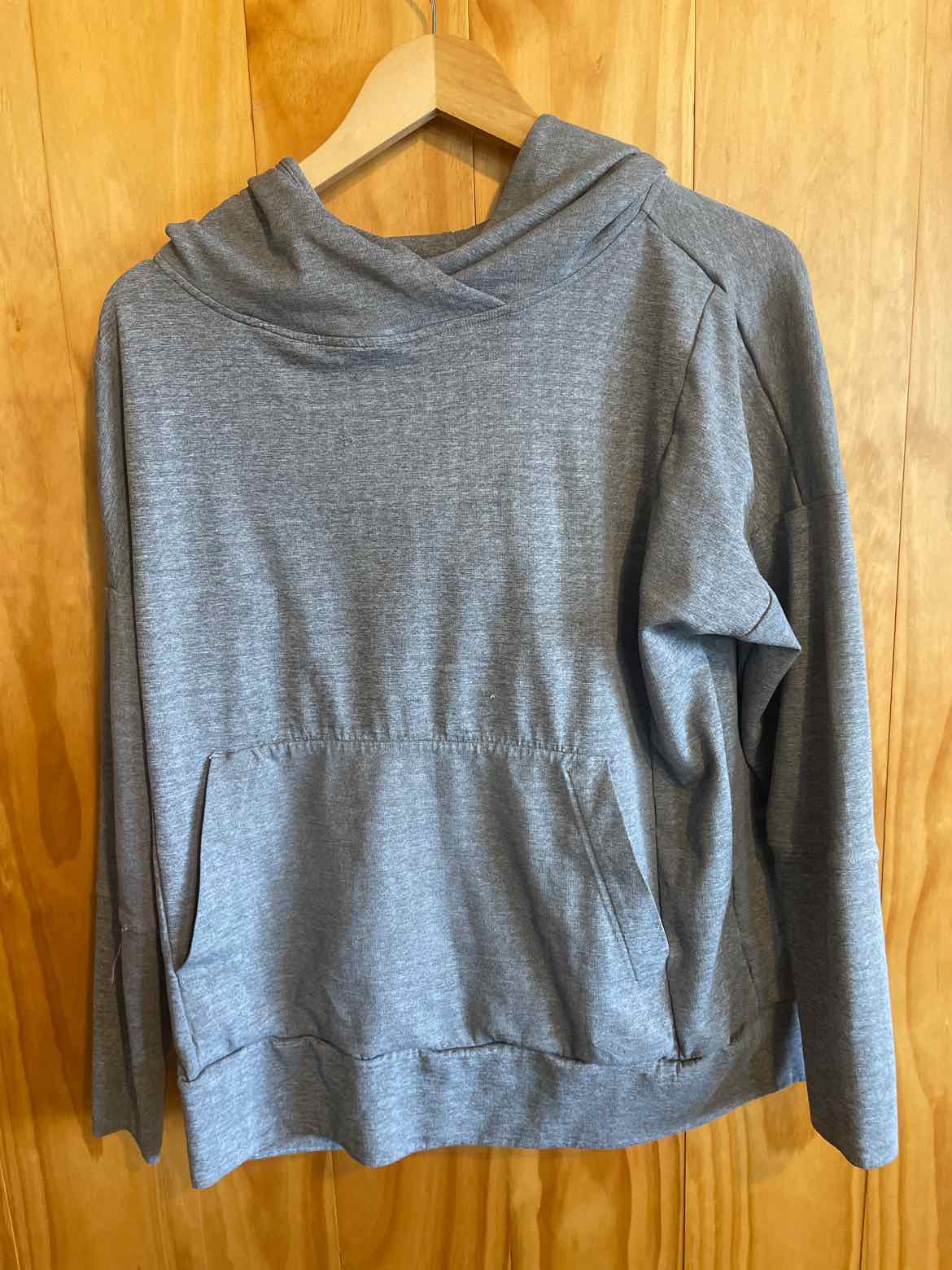 Gray running hoodie w/ long cuffs, size M