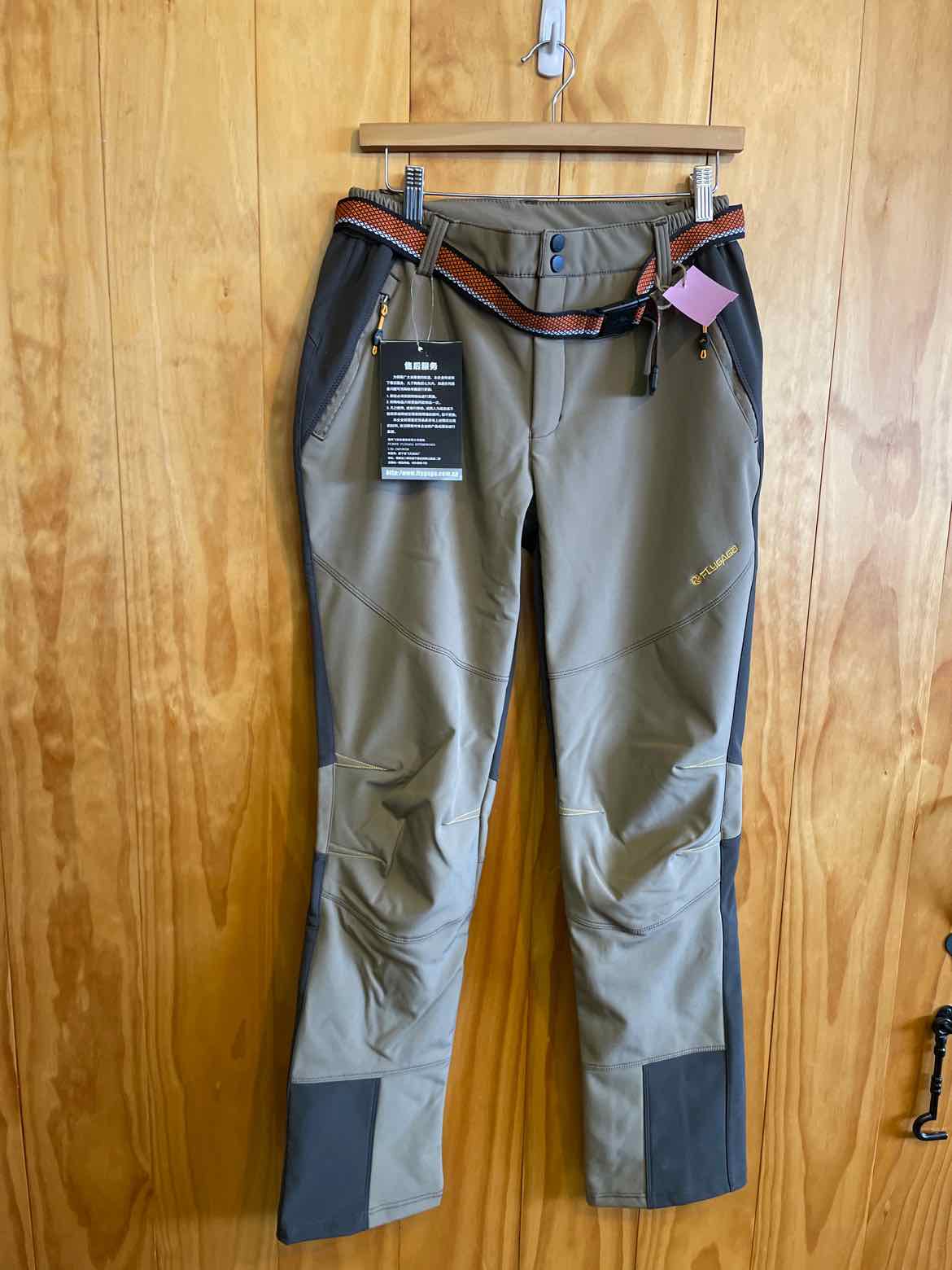 NWT tan and grey fleece lined pants with adjustable orange belt. size medium