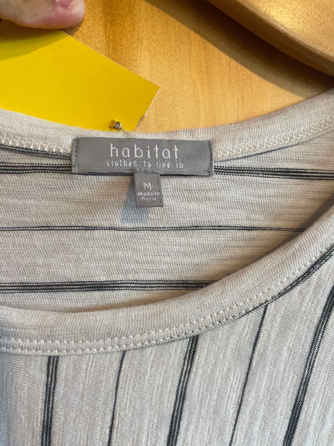 Women's Habitat long sleeve shirt. Cream wth black stripes. Patchwork panels. Medium.