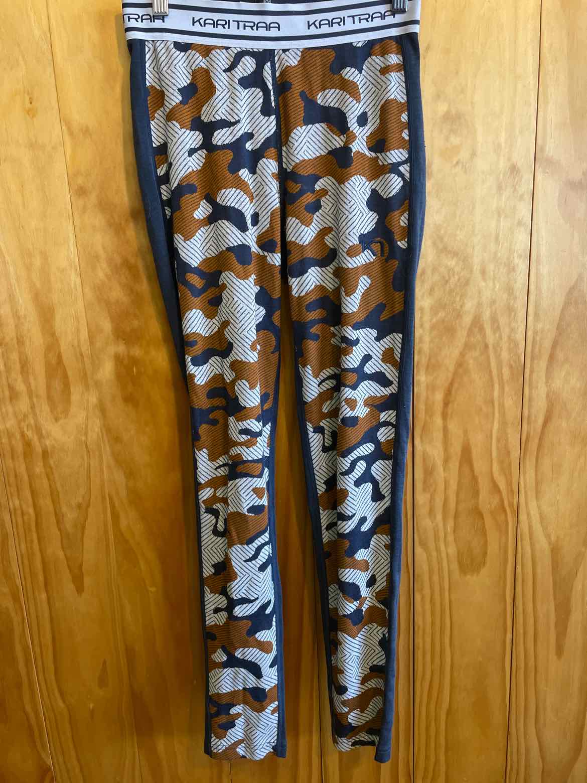 Wool blend orange, white and grey camo esque base layer bottoms. size small