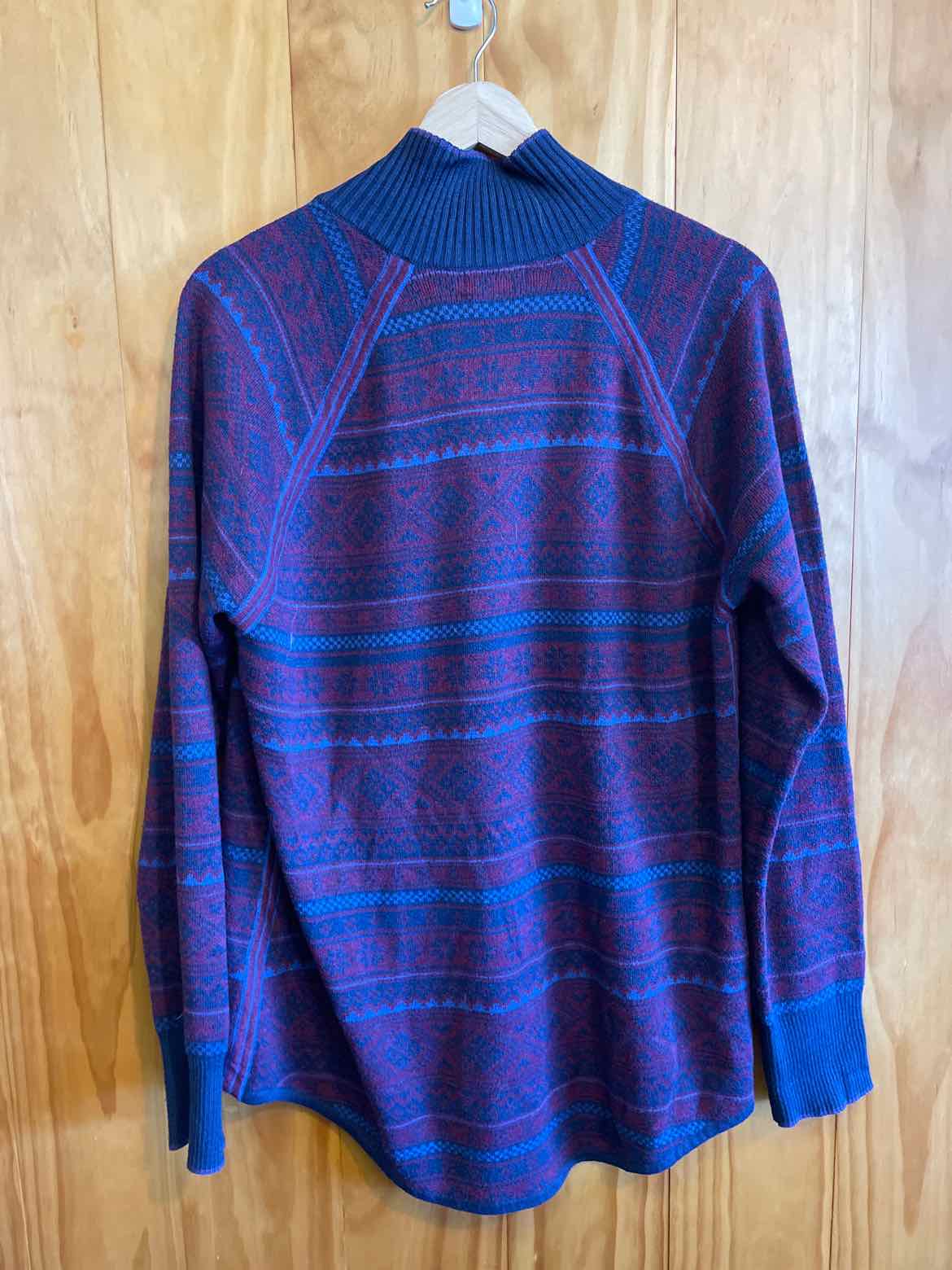 1/2 zip nordic style sweater. ribbed navy collar. red and navy