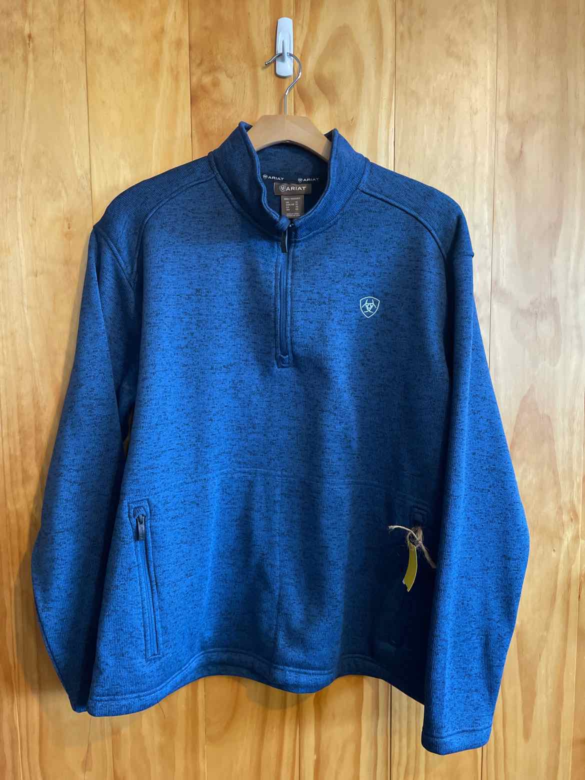 Fleece 1/2zip with 2 zip pockets. brown tag. blue with black spots