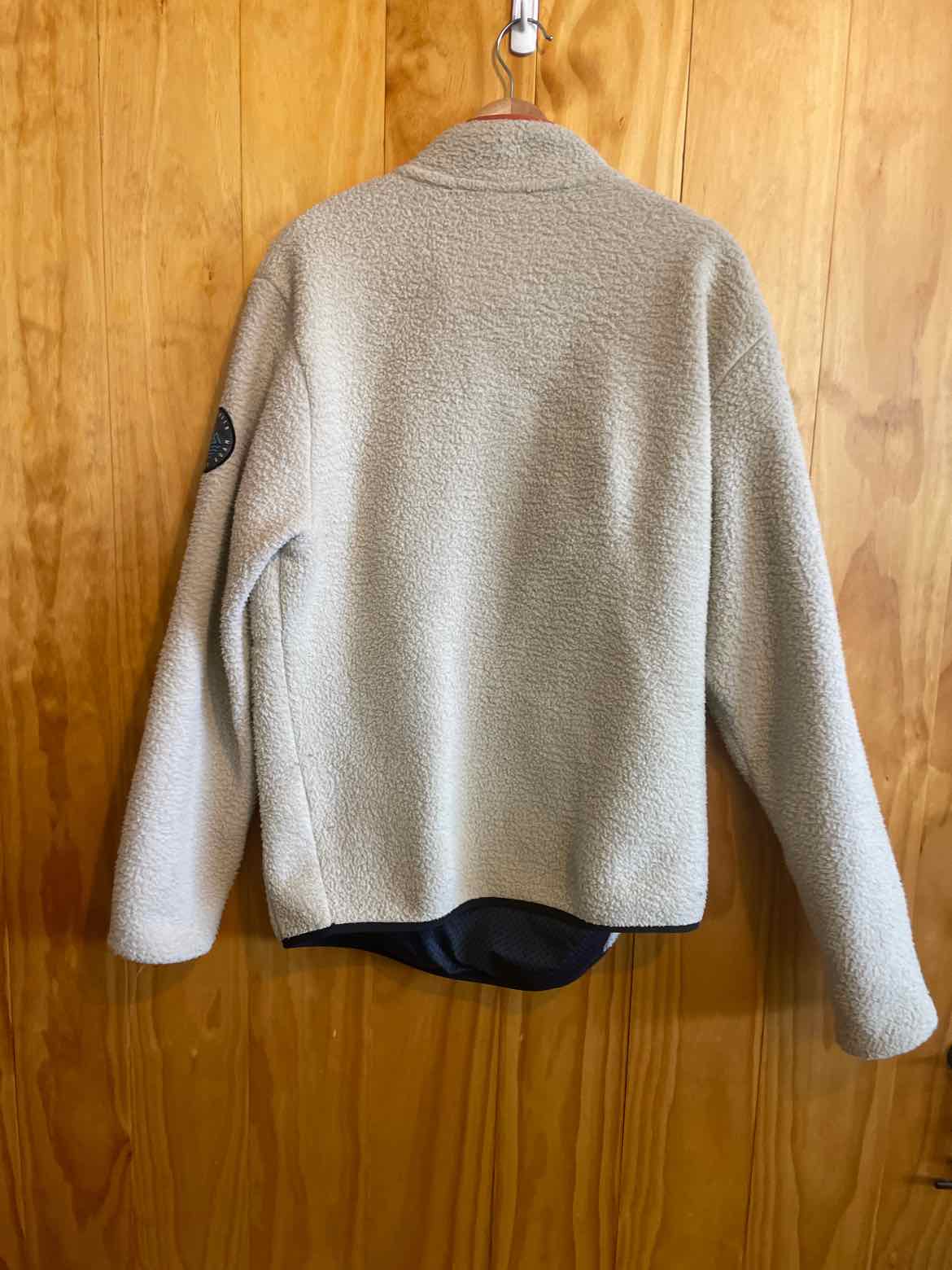 passenger quarter button sherpa fleece sweatshirt with side zipper pockets and arm patch