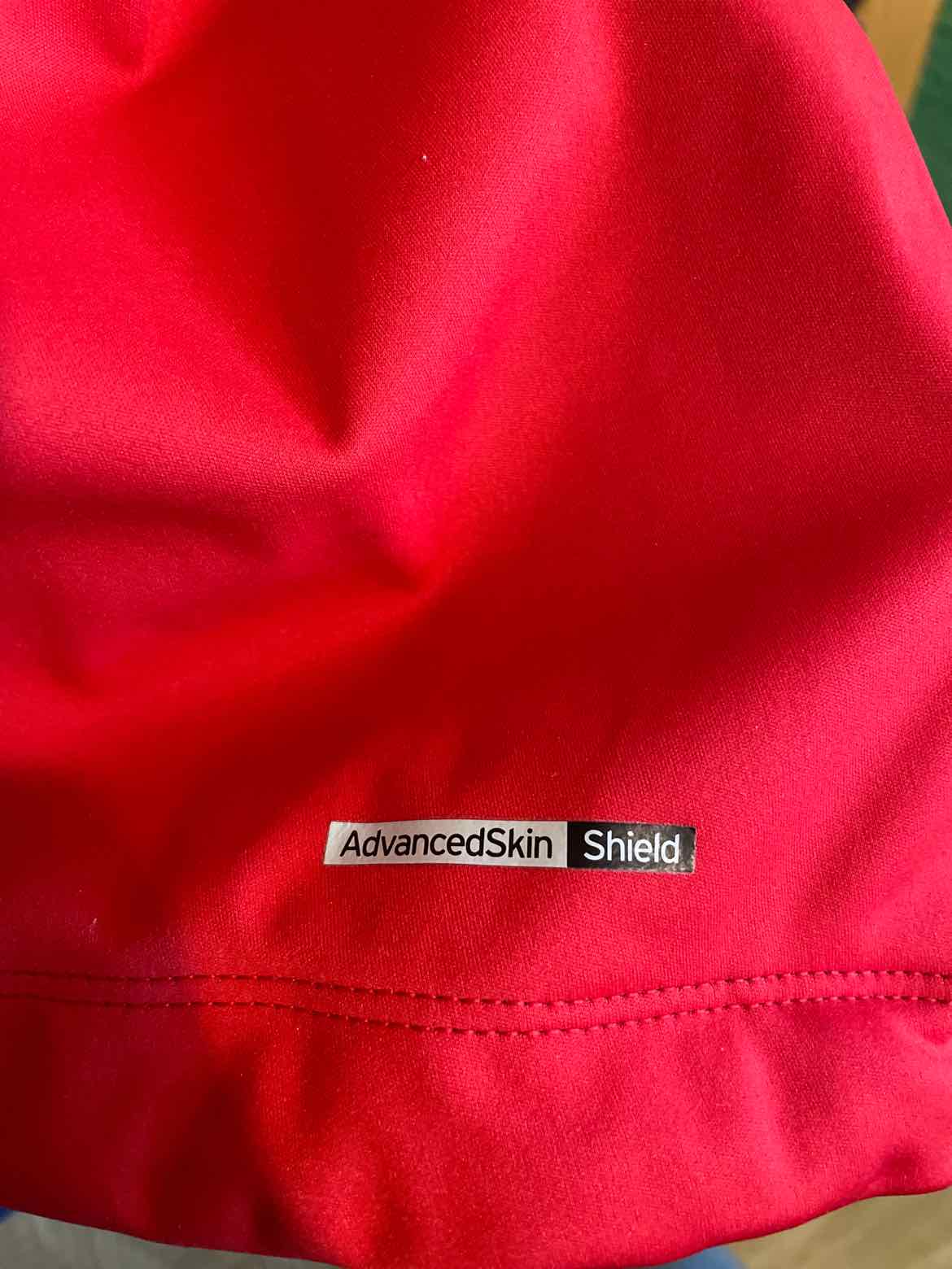 Full-zip light jacket with blue accents. has a few black marks on front, sold as is. AdvancedSkin Shield