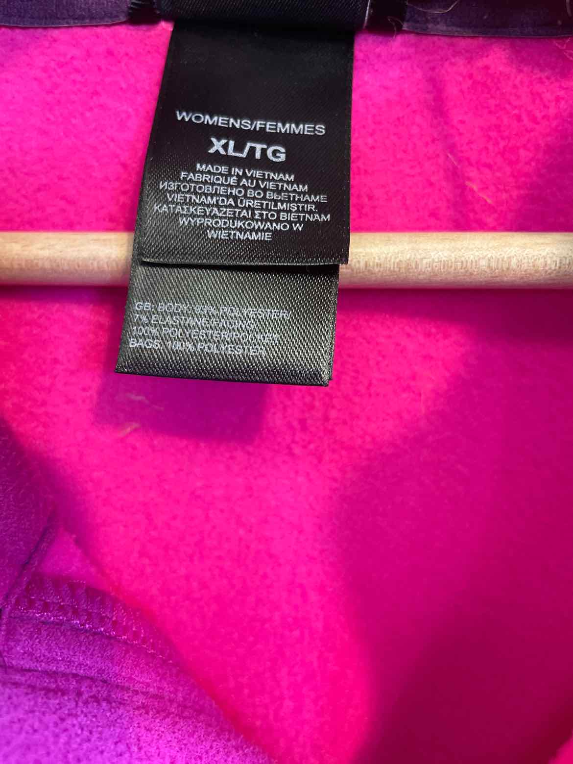 Pink and purple full-zip fleece jacket. slight wear on front. size xl