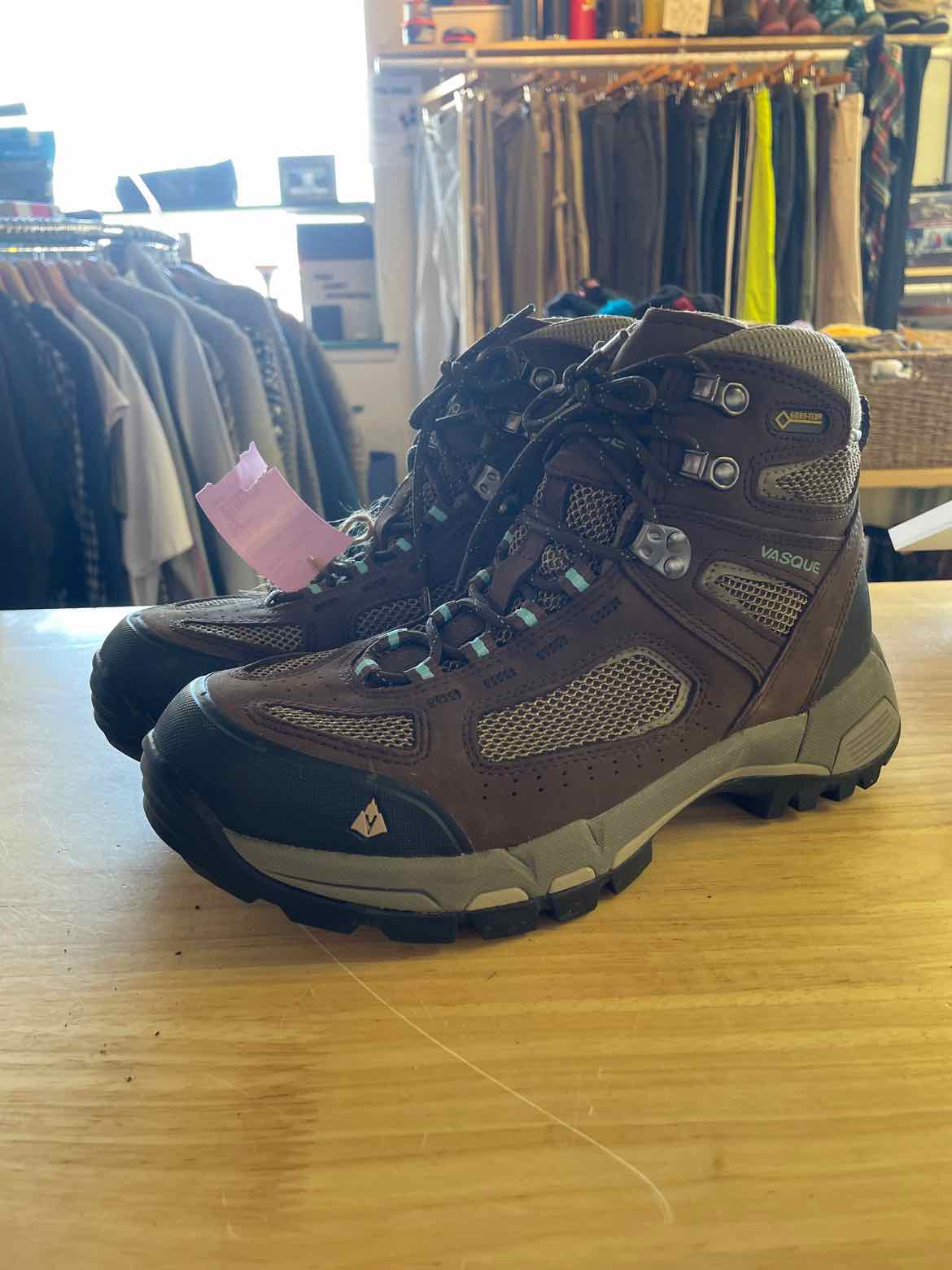 Dark brown and Khaki Womens 10, Vasque Gore-Tex, Teal Accents.