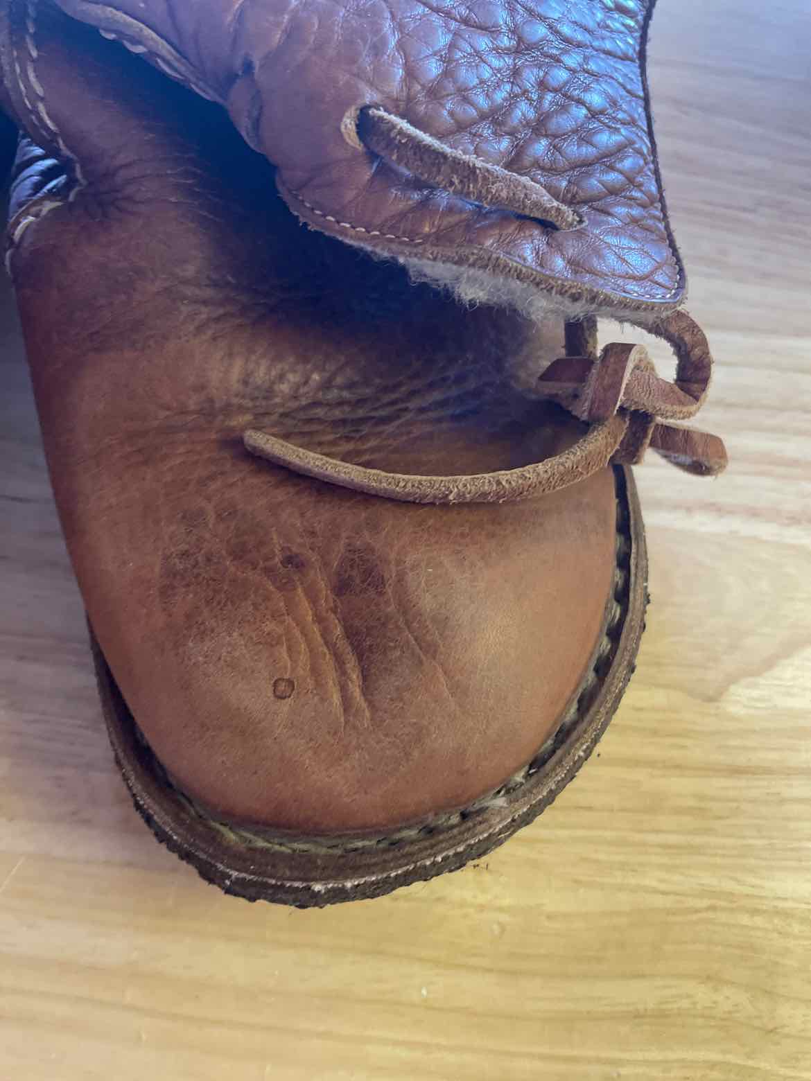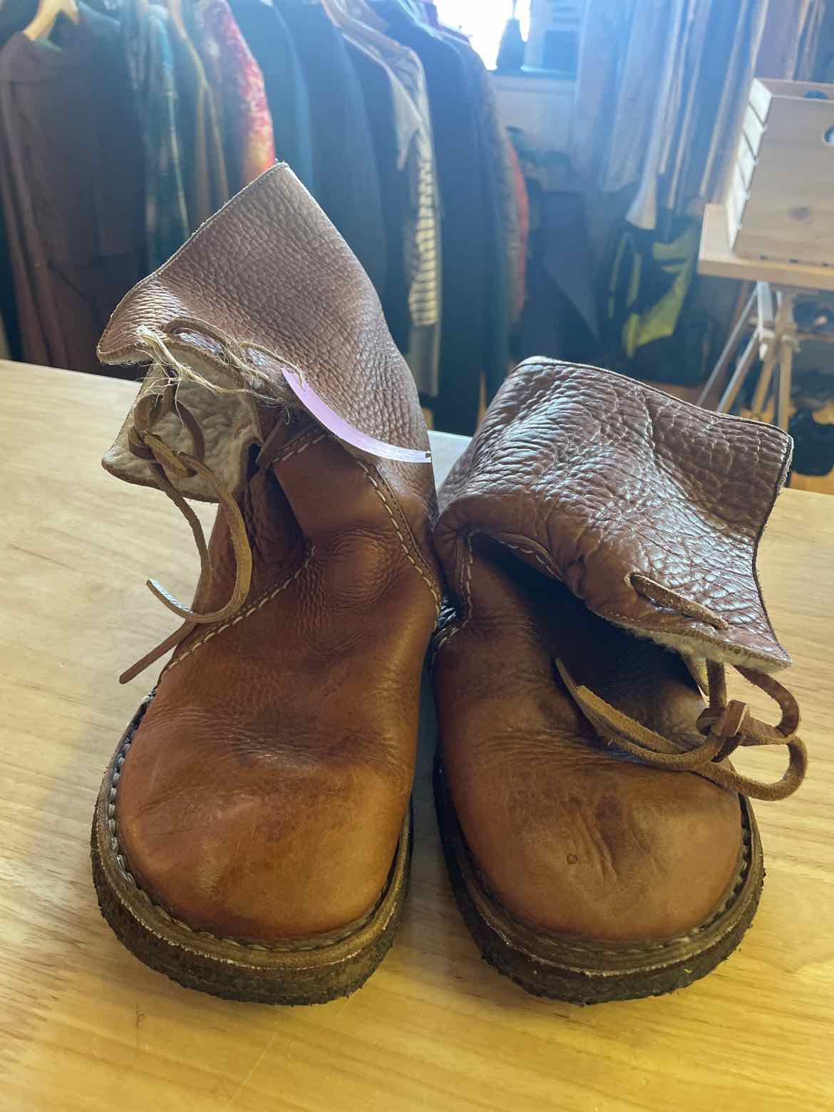 Leather sherpa lined mid lace up boots. has a few stains, sold as is