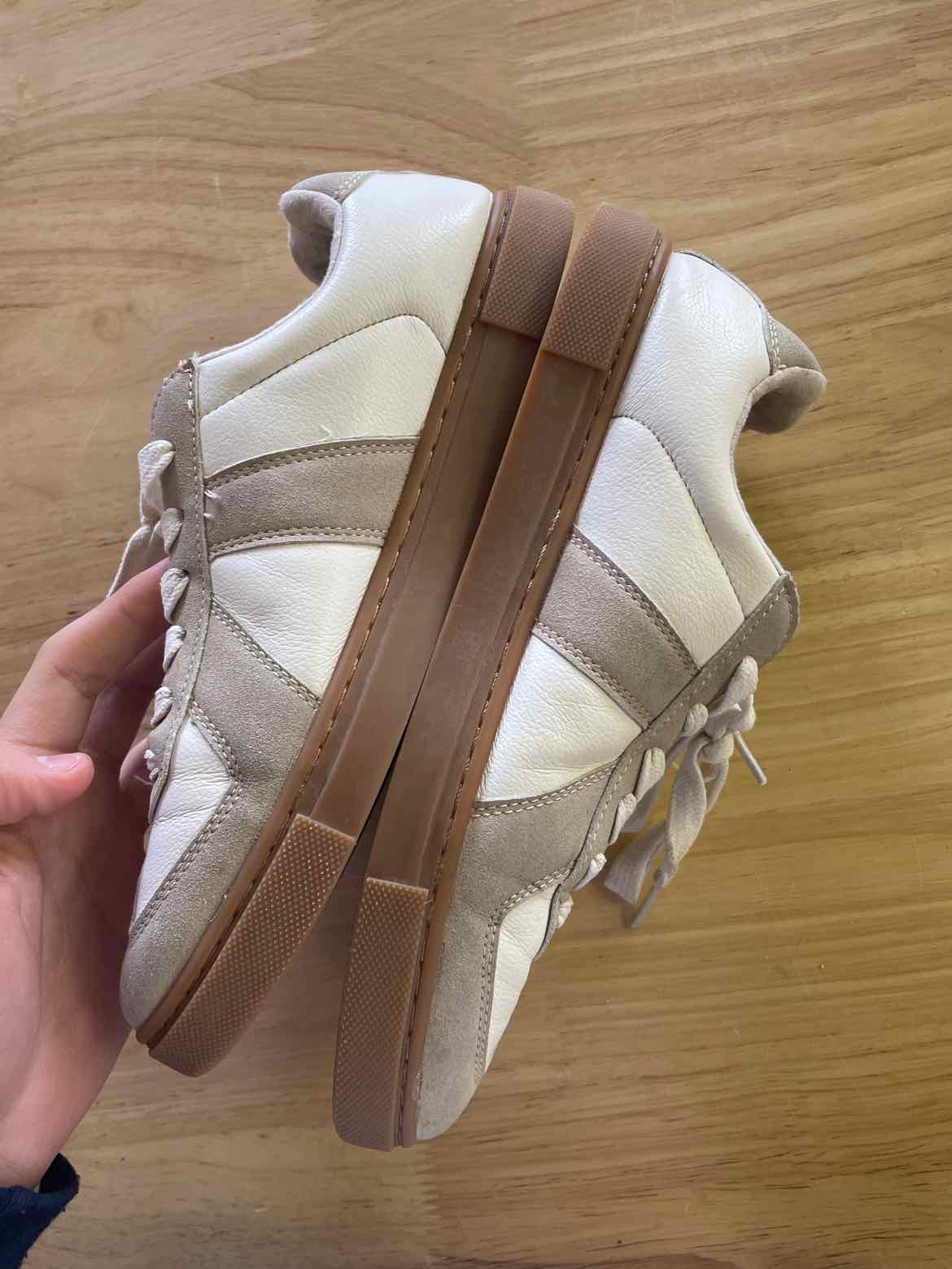 White shoe with grey design, brown tread, Size 9, Sincerely Jules